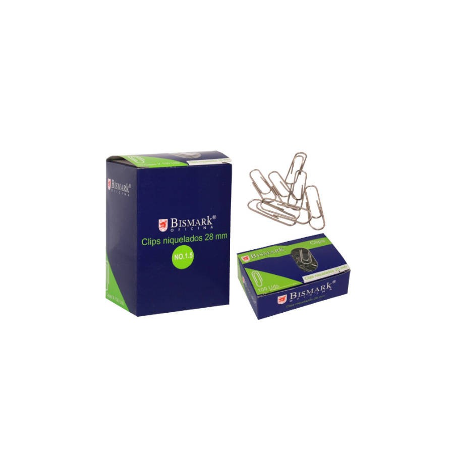 CAJA 100 CLIPS LABIADOS NIQUELADOS PUNTA REDONDA No 1,5 DE 28 MM. BISMARK 316866