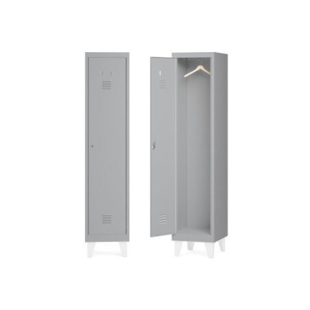 Taquillas individuales de 30 cm de ancho, pensadas para uso en ambientes interiores tales como vestuarios, centros sanitarios, administracion publica, entornos educativos, industriales o comerciales. Taquillas monoblock metalicas con una estructura soldada para obtener una rigidez y estabilidad optima. Sistema de bisagra pivotante de facil montaje con apertura de 125o. Puertas con etiquetero y sistema de ventilacion de serie. Diferentes sistemas de cierre a elegir, que permiten conseguir la seguridad deseada. Patas metalicas con niveladores. Sistema de fijacion mediante soldadura o atornillada. Las taquillas no son aptas para usos en ambientes exteriores ni para aplicaciones de almacenaje de productos quimicos, toxicos, inflamables, explosivos,. Multiples combinaciones y acabados para adaptarse a todo tipo de necesidades.Las taquillas se suministran sin pies ni zocalo (venta opcional independiente)