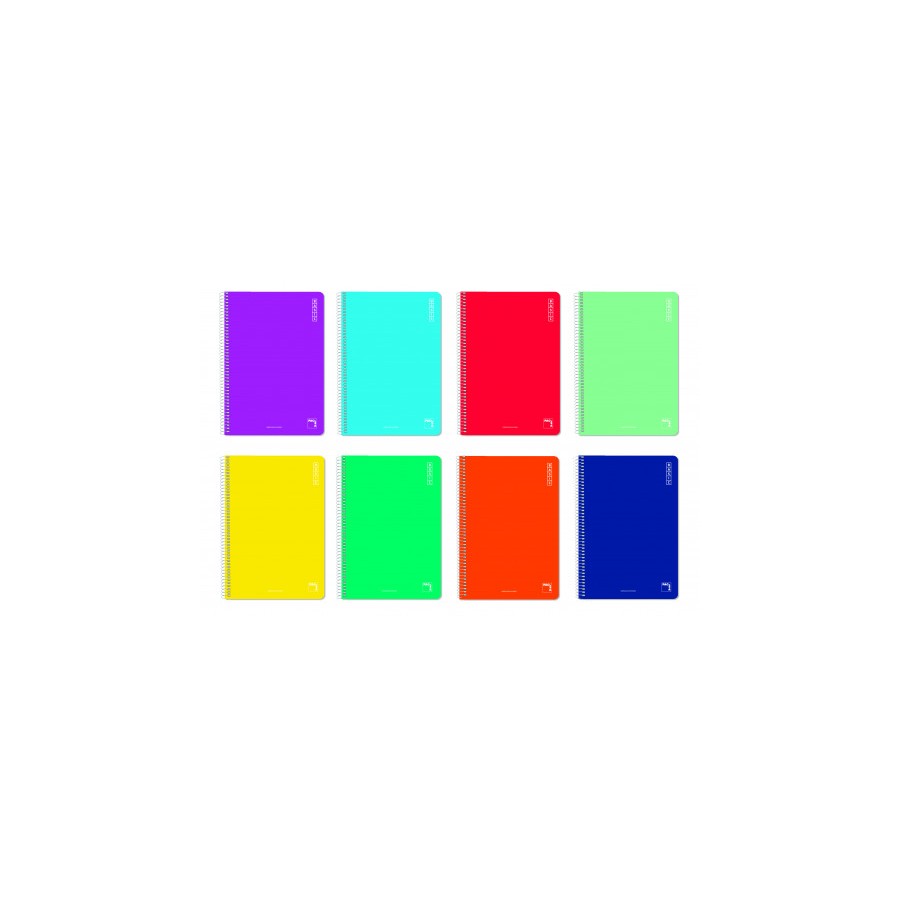 Cuaderno con tapa de cartoncillo plastificado 400 grs en 8 colores surtidos. Contraportada de cartoncillo 5400 gr estucado en blanco. 80 hojas de papel cuadriculado 60 grs. Espiral con coil-lock nylonizado blanco. Tamano octavo.