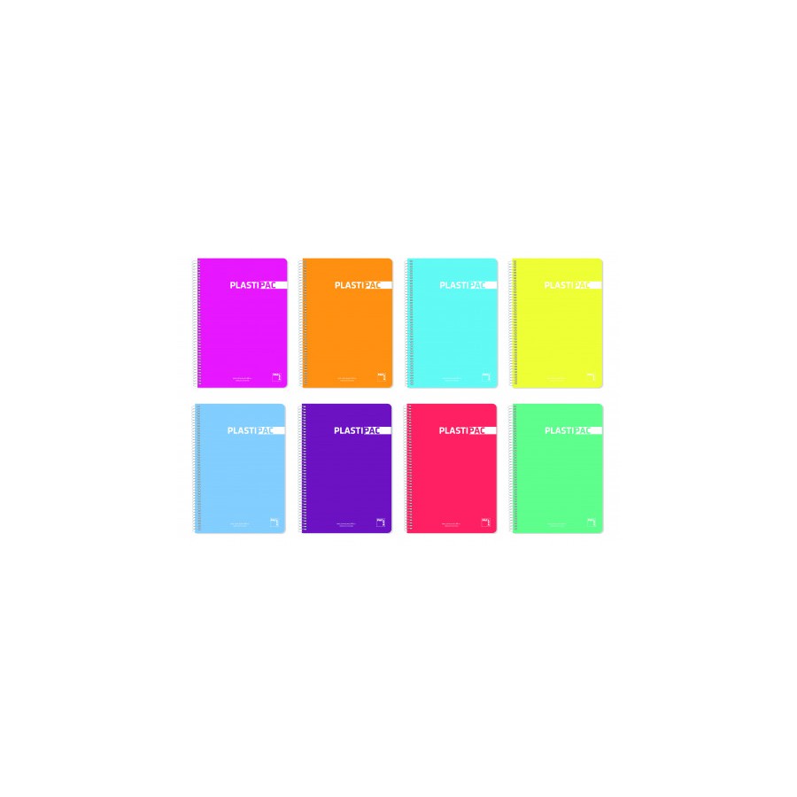 CUADERNO SERIE PLASTIPAC TAPA POLIPROPILENO 90 GRS. A-4 (210X297MM.) MICROPERFORADO 100 HOJAS CUADRICULA 5X5 + GRECA SURTIDO PACSA 16683