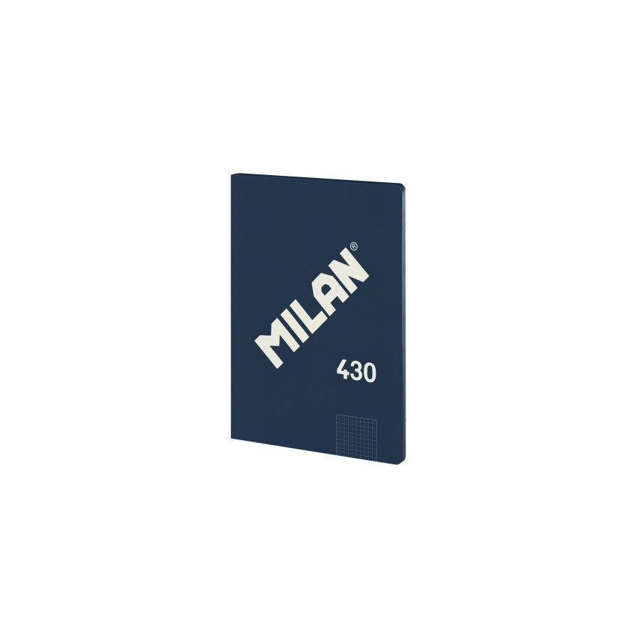 Libreta A4 encolada (sin grapas) y tapa flexible. 48 hojas de papel cuadriculado (5 x 5 mm). Papel de 95 gr/m2 de alta calidad, microperforado. Cubierta de carton flexible y logotipo MILAN brillante en relieve. Color azul marino. Coleccion 430 since 1918, inspirada en los colores y diseno originales de las gomas de borrar MILAN, fabricadas en Espana desde 1918.