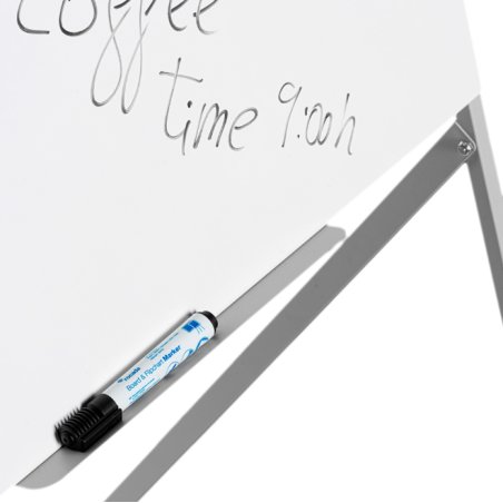 Pizarra tripode metalica y magnetica de gran estabilidad, apta para escritura con rotuladores de borrado en seco. Admite bloc de papel. Sus pies plegables permiten un almacenamiento optimo(68x185x79cm)